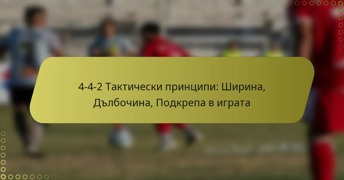 Формацията 4-4-2 е изградена около три основни принципа: ширина, дълбочина и поддържаща игра. Тези елементи работят заедно, за да създадат балансирана и ефективна тактическа структура на терена. Чрез ефективно използване на фланговете, отборите могат да разтегнат защитата на противника, докато вертикалното пространство подобрява както атакуващите опции, така и защитната стабилност.