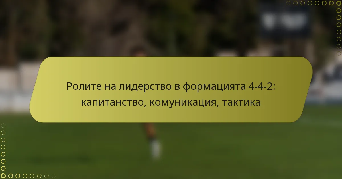 В формацията 4-4-2 ключовите лидерски роли включват капитан, заместник-капитан и лидери на позициите, като всеки от тях допринася за ефективната комуникация, тактическото изпълнение и екипната сплотеност. Тези роли са съществени за поддържането на структурата и представянето на терена.